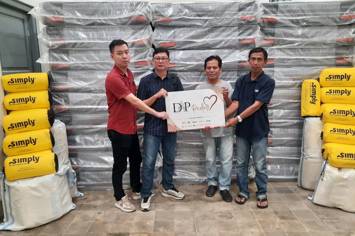 Melalui program CSR DAP Peduli, PT Duta Abadi Primantara kembali berdonasi dengan menyalurkan bantuan berupa 28 kasur Florence, 2 dipan Florence, dan 56 bantal Simply Plush ke Rumah Harapan Indonesia.