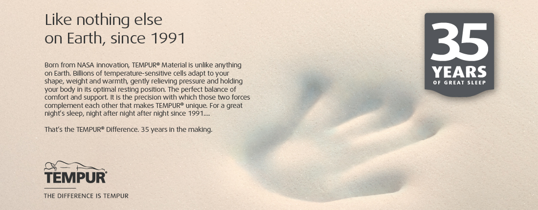1The company and its products were recognised by NASA. At a joint press conference on May 6, 1998, NASA recognised TEMPUR®’s outstanding achievements in adapting the original NASA technology for everyday use and improving the quality of life for humankind.